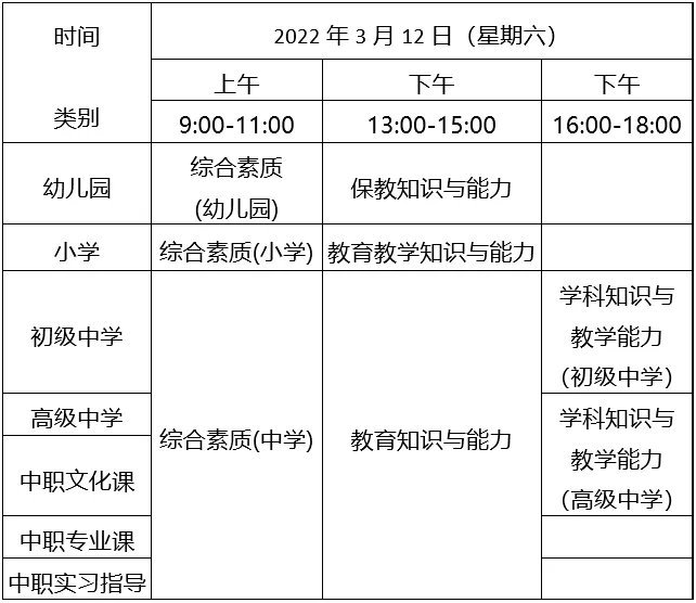 2022上半年佛山中小学教师资格笔试时间及科目
