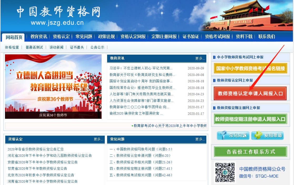 申请人登录“中国教师资格网”,选择“教师资格认定申请人网报入口”,用本人注册账号和密码登录,选择“教师资格认定”(点击报名)模块进行报名,报名前请认真阅读“须知”。