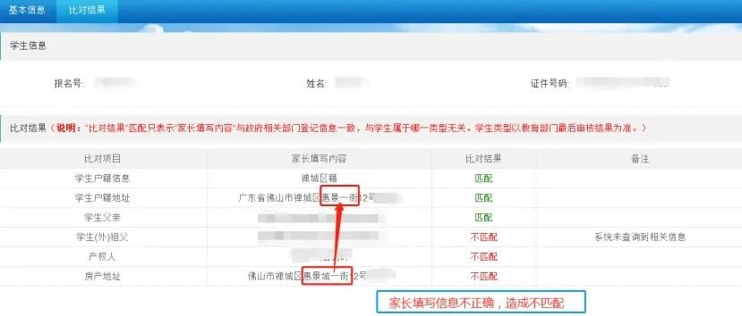 1、当家长发现网上信息比对结果不匹配的,无需过于紧张。