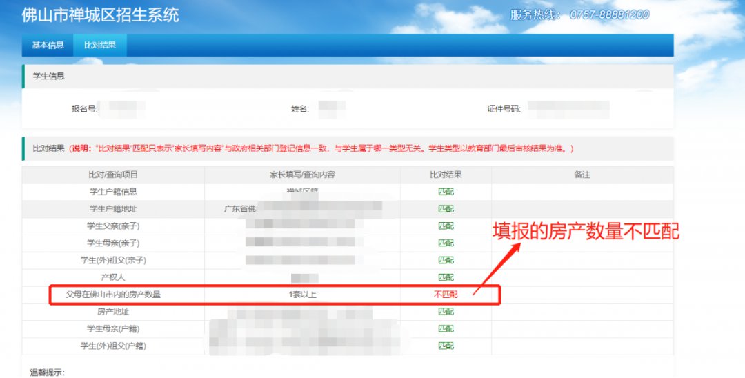 3、父母在佛山市内的房产数量不匹配。
