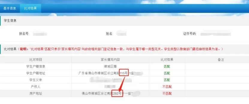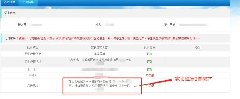 1、家长填报房产地址信息有误,造成比对结果不匹配。
