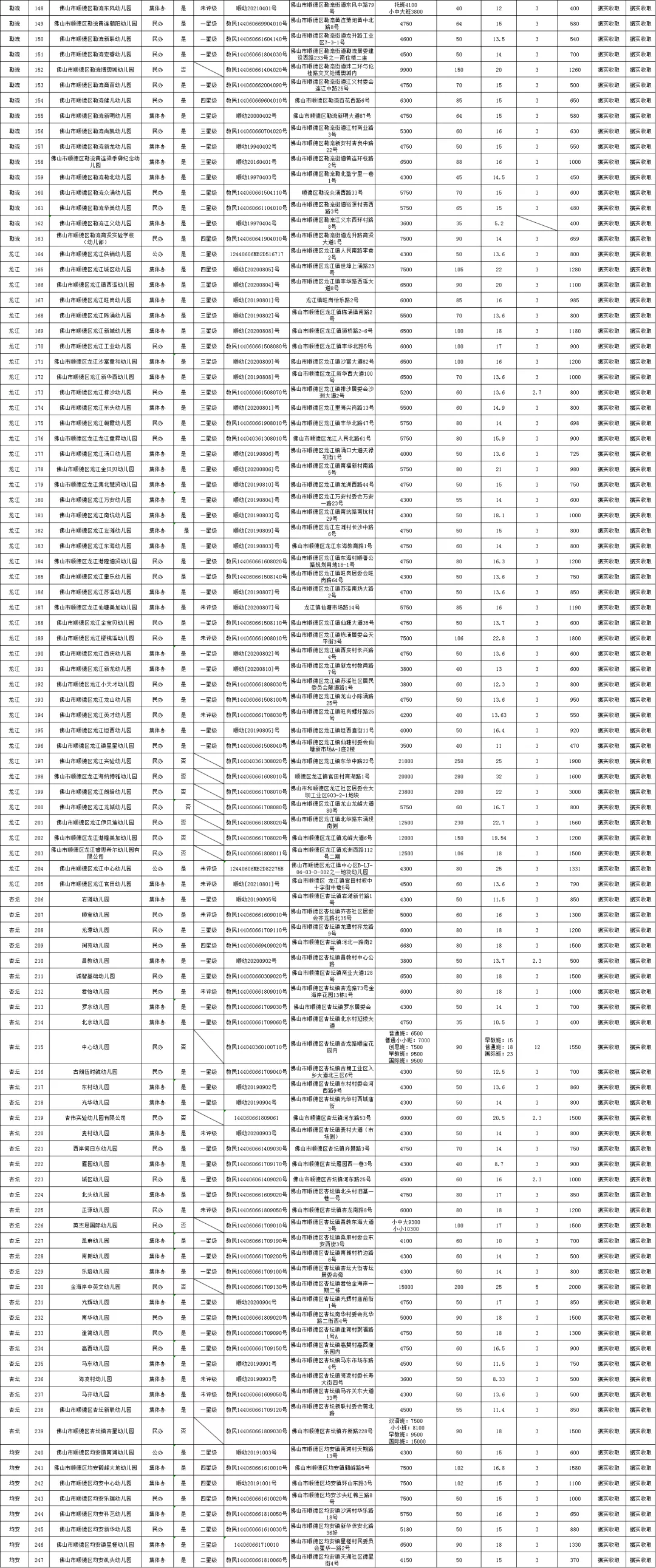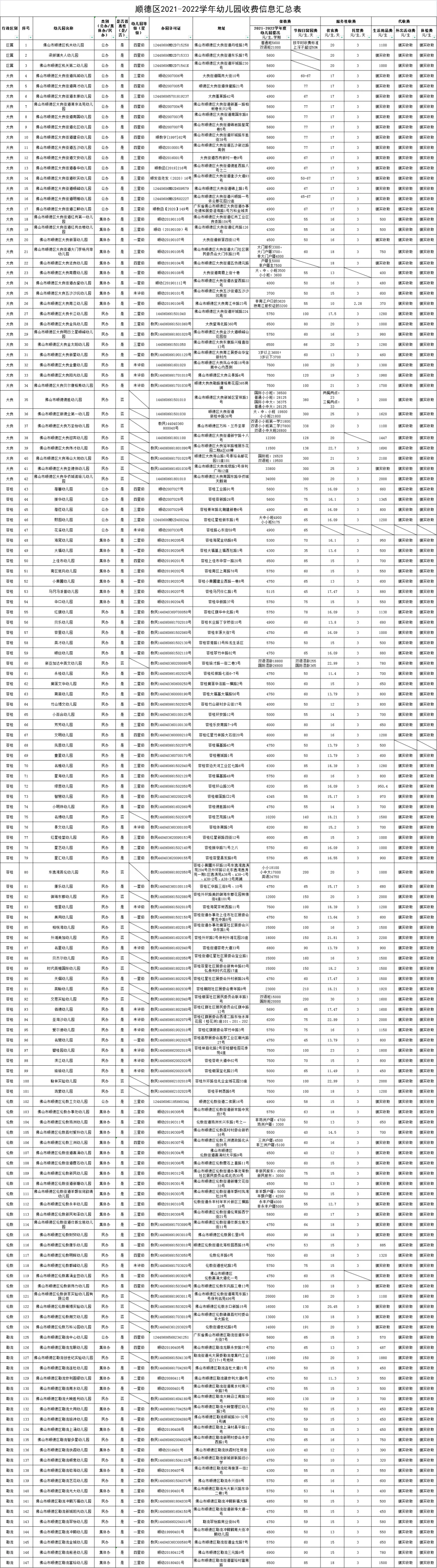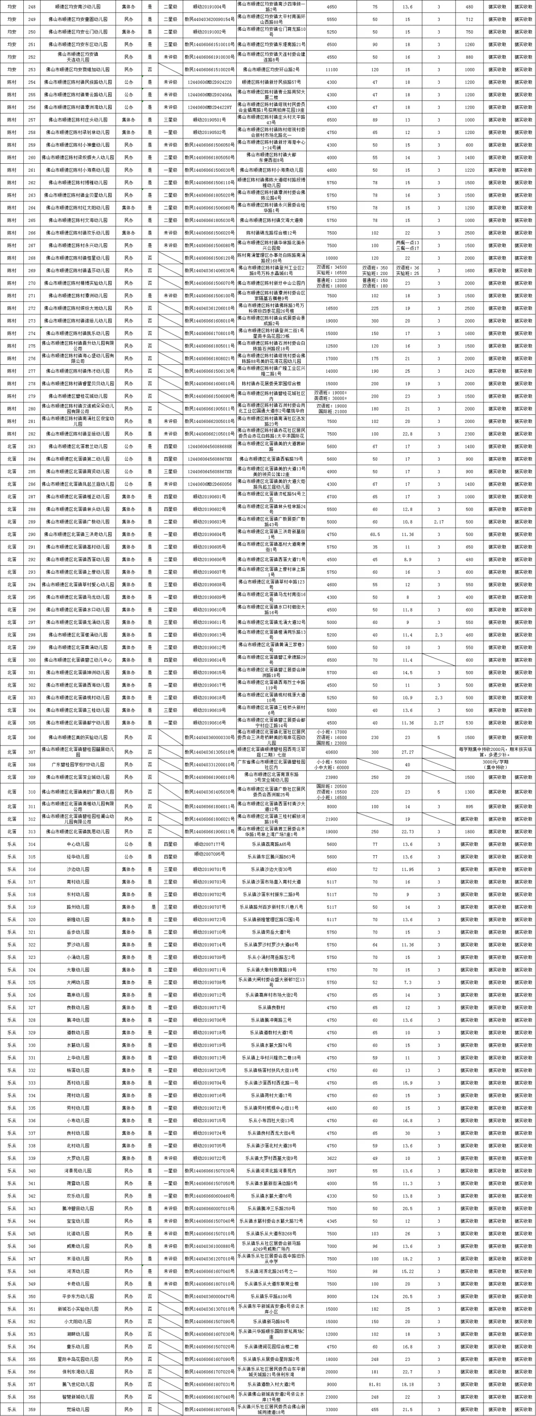 顺德区发展和改革局近日发布《顺德区2021-2022学年幼儿园收费信息汇总表》,公示了顺德区359所学校的收费情况。