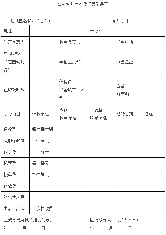 3、幼儿园收费必须严格按照信息收集表的收费项目和标准执行,不得中途增加任何费用。