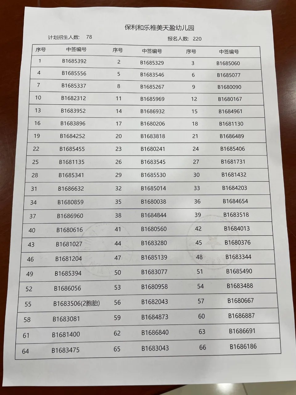 禅城区保利和乐稚美天盈幼儿园摇珠录取结果公布: