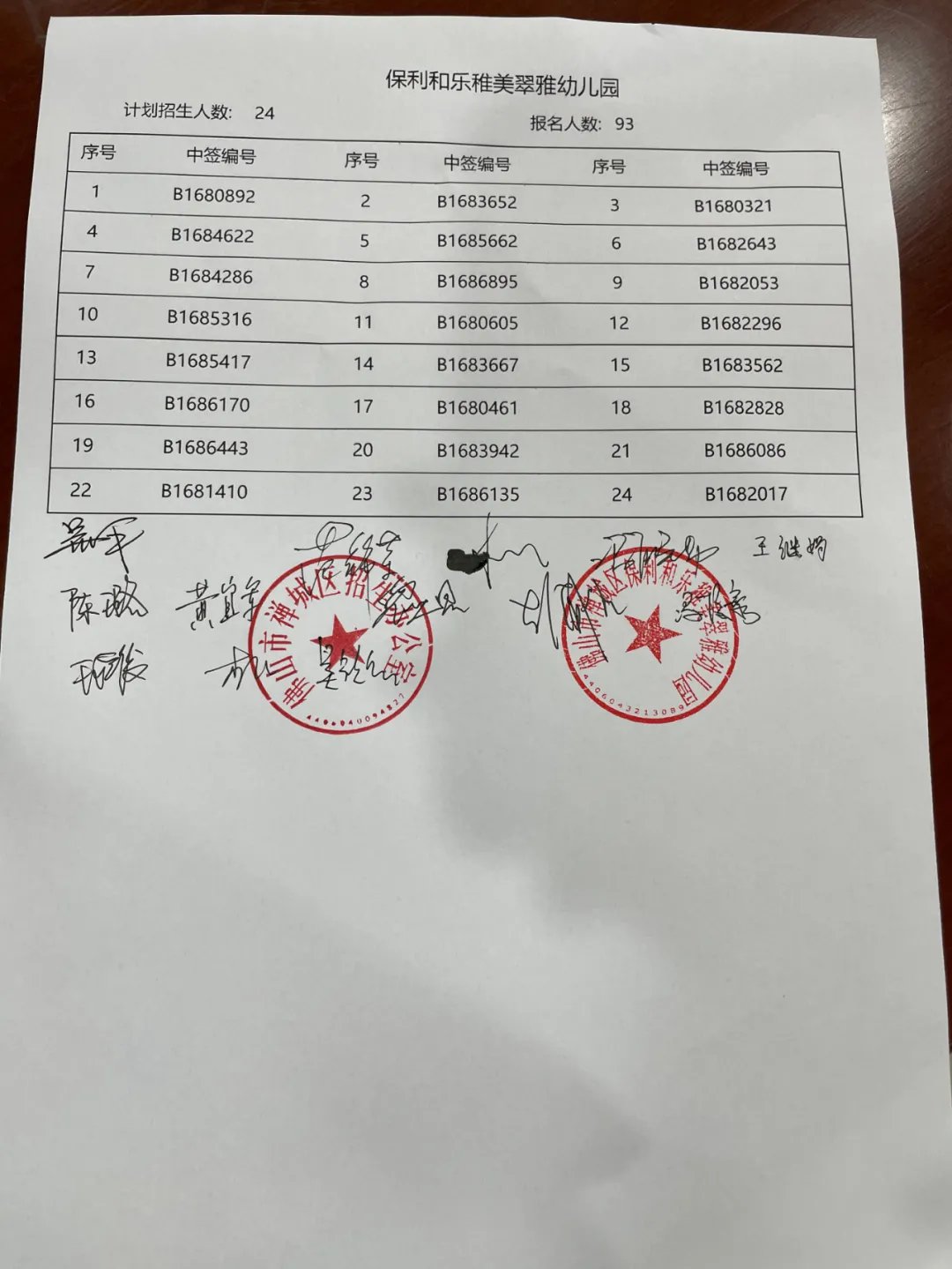 禅城区保利和乐稚美翠雅幼儿园摇珠录取结果公布: