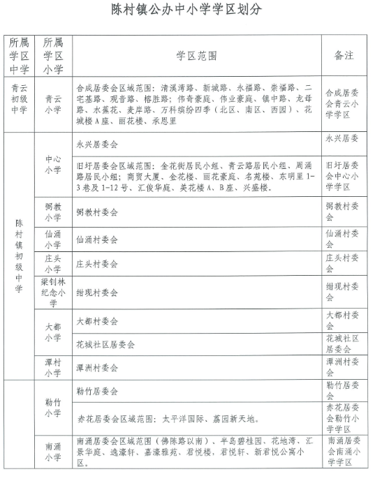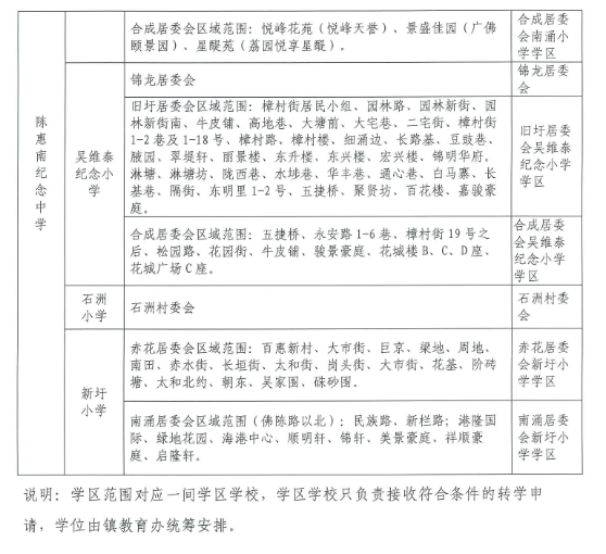 2022佛山顺德区陈村镇公办中小学学区划分: