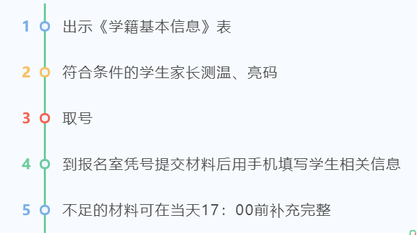 (四)疫情防控需要,报名当天,由1名家长携带资料到学校现场报名。要出示粤康码,行程码、测温,然后到指定地点报名,全程佩戴口罩。