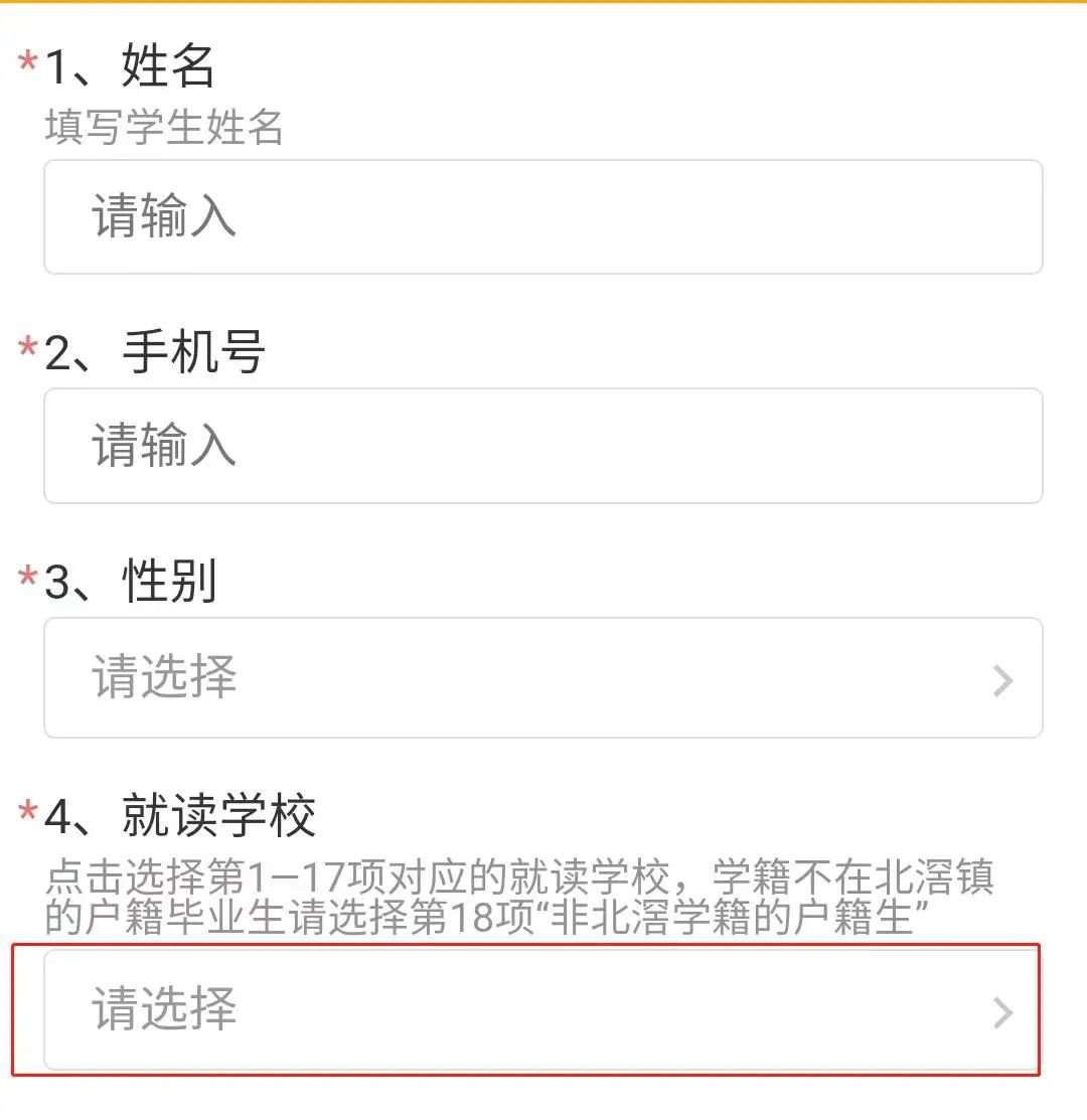 (3)【填写报名信息】点击选择对应的就读学校,学籍不在我镇的户籍毕业生请选择“非北滘学籍的户籍生”;并按网上填报指引上传相关佐证材料。