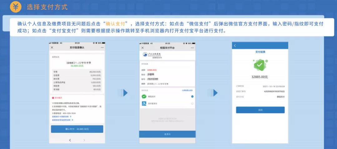 2、做好防疫保障。新生报到当天,将有大批来自天南海北的新生和家长入校。新生提前完成线上缴费,可极大降低人群聚集,保证学校维持安全可控的防疫环境。