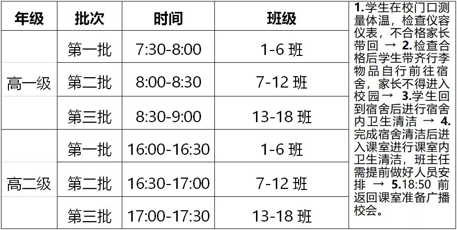 ●高二级:初定于2021年8月31日下午16:00-17:30,分批次返回学校,前门及后门同时开放,请家长和学生配合学校按照规定时间准时返校。