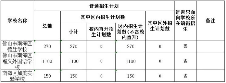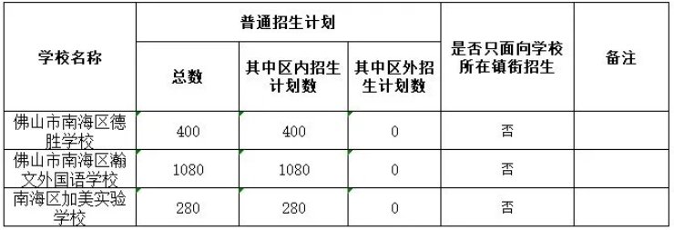 佛山市南海区德胜学校、佛山市南海区瀚文外国语学校、南海区加美实验学校3所民办学校符合征集志愿录取条件。招生计划如下: