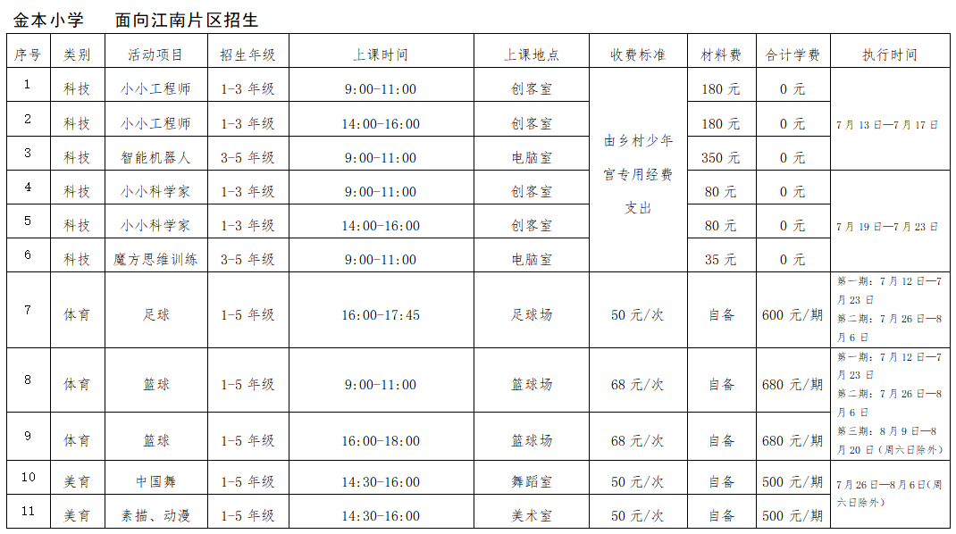 西南街道中心小学、北江小学、金本小学的托管服务安排见附表。