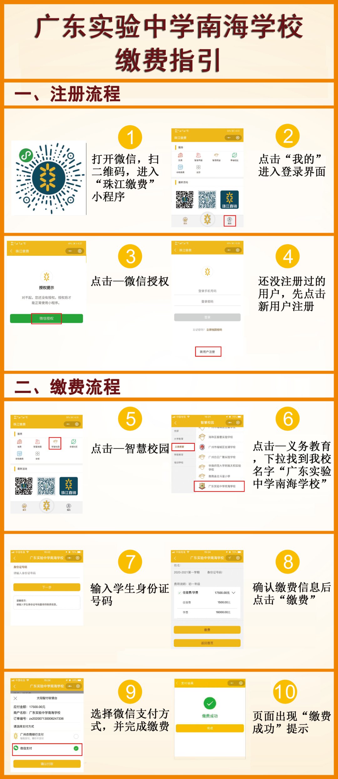 5.缴费方式:“珠江缴费”小程序,微信扫描二维码支付(建议微信零钱或微信绑定的银行有足够的金额)。