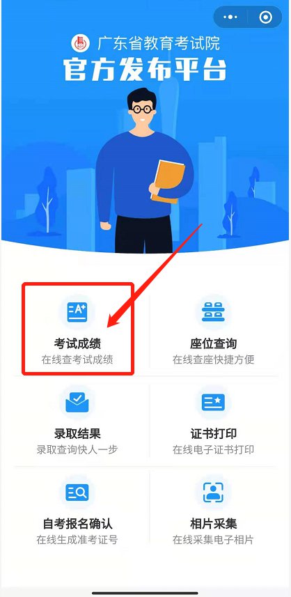 考生可通过广东省教育考试院官微小程序“考试成绩”栏查询成绩。