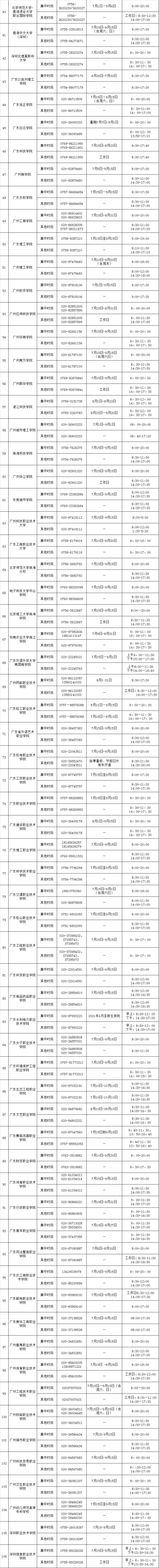 2021年广东高校学生资助咨询热线情况表