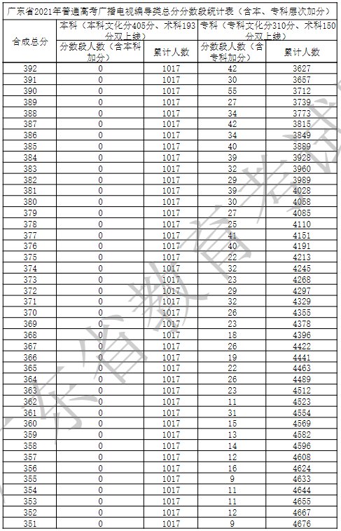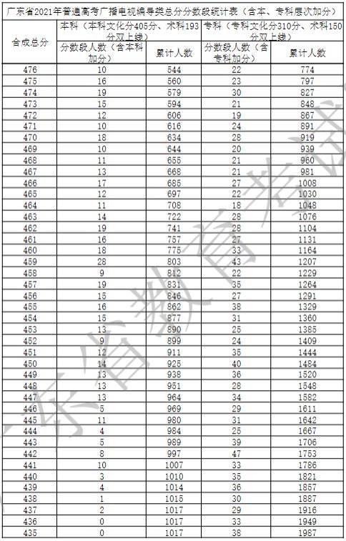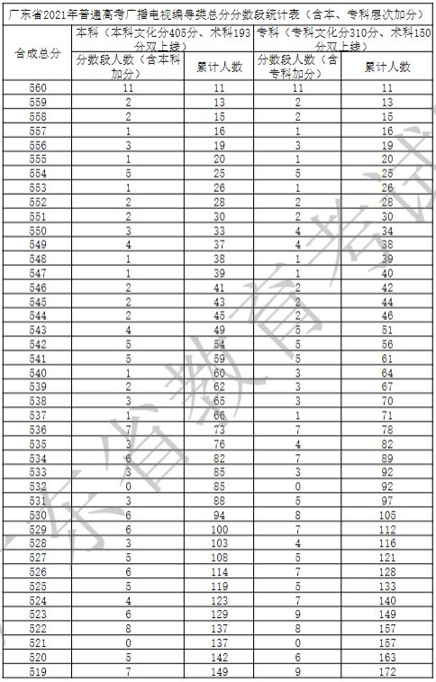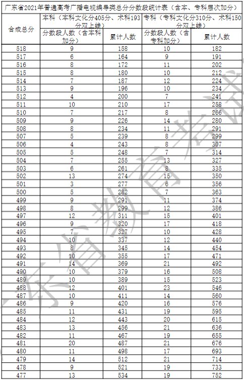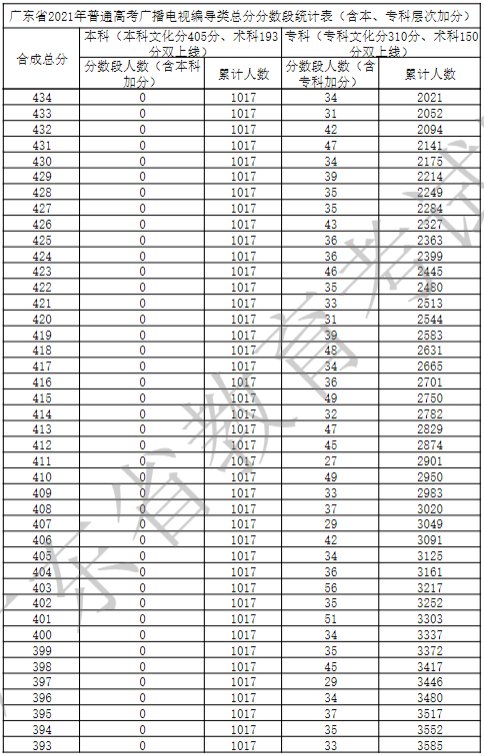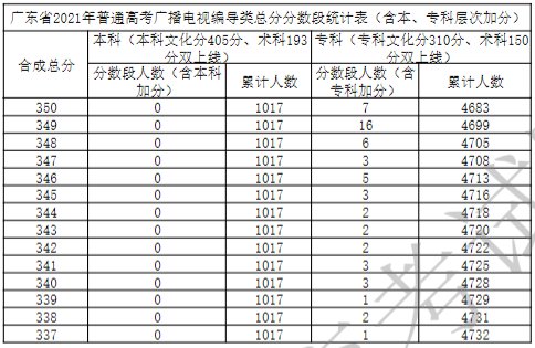广东省2021年广播电视编导类一分一段表