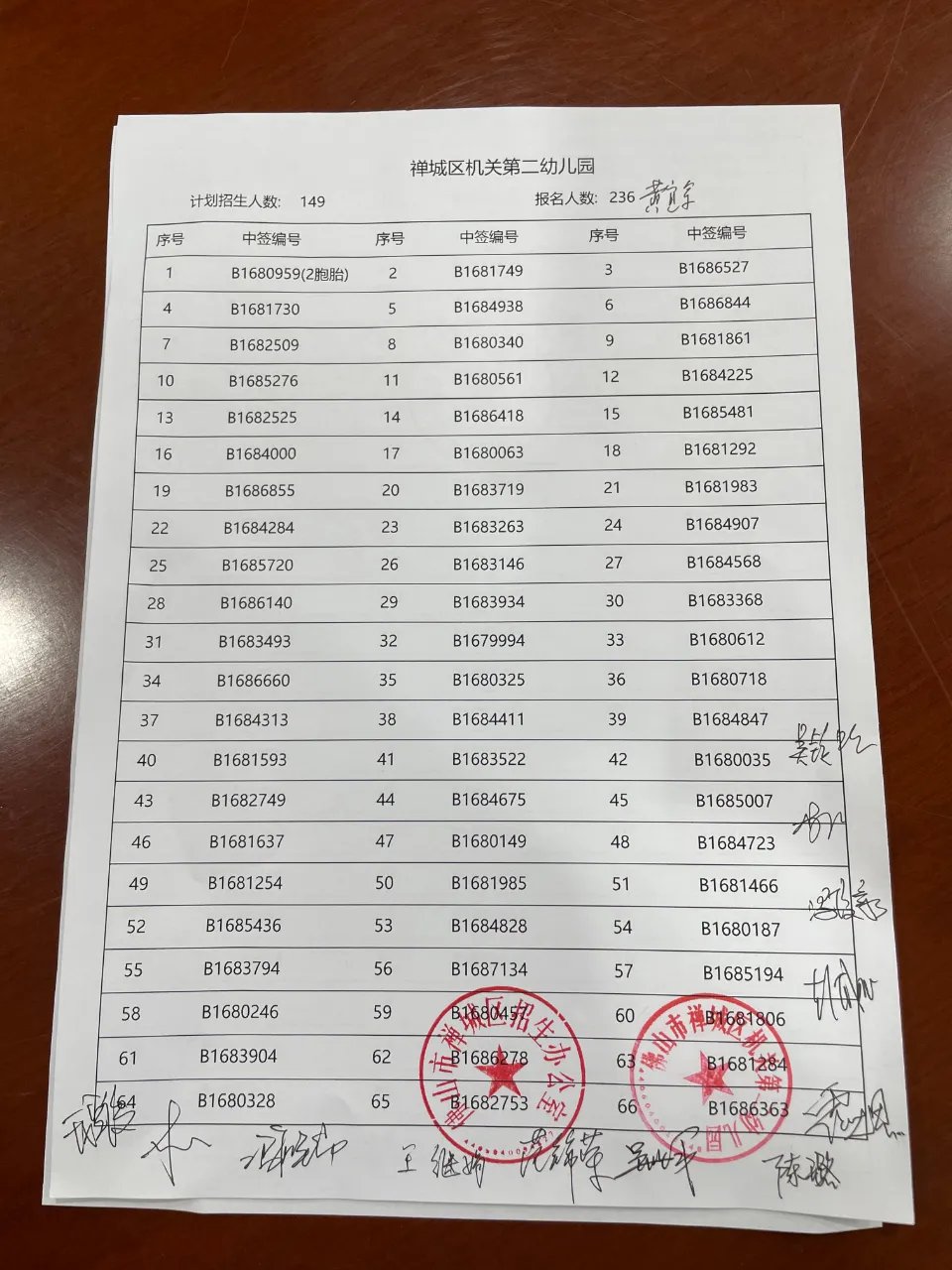 2021年度禅城区机关第二幼儿园摇珠学位为149个,参加摇珠总人数为238人。