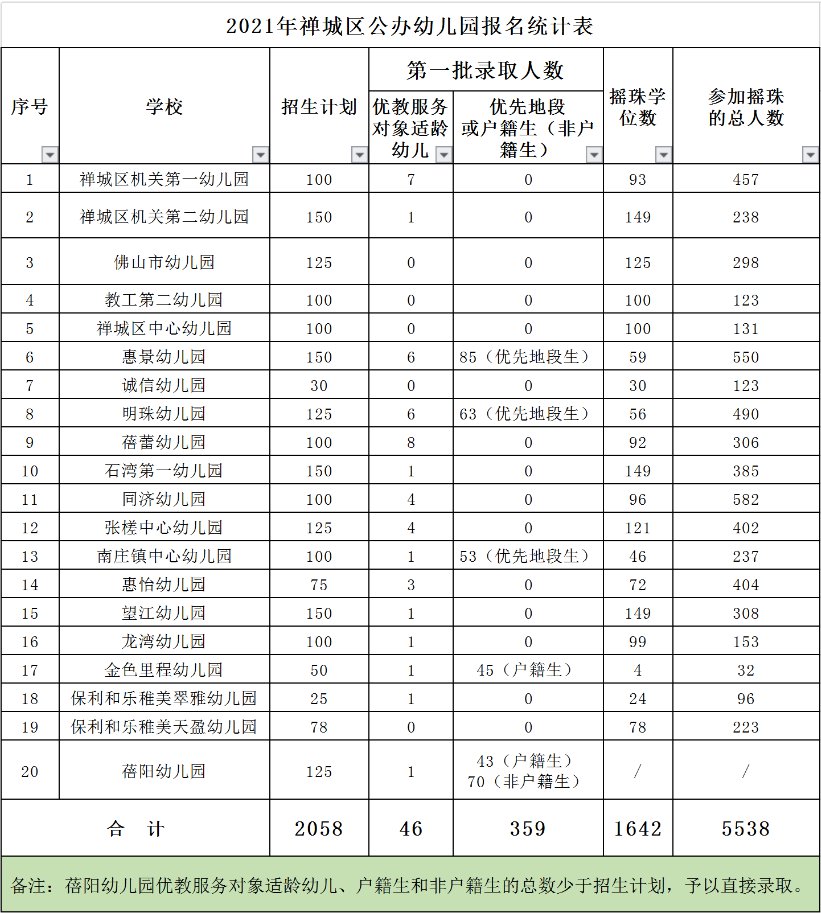 2021年禅城区公办幼儿园报名统计表(2021年禅城区公办幼儿园报名统计表图片)