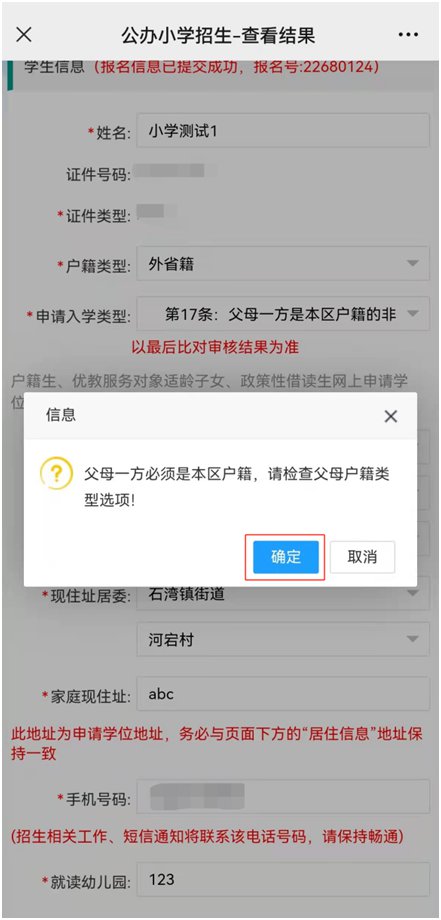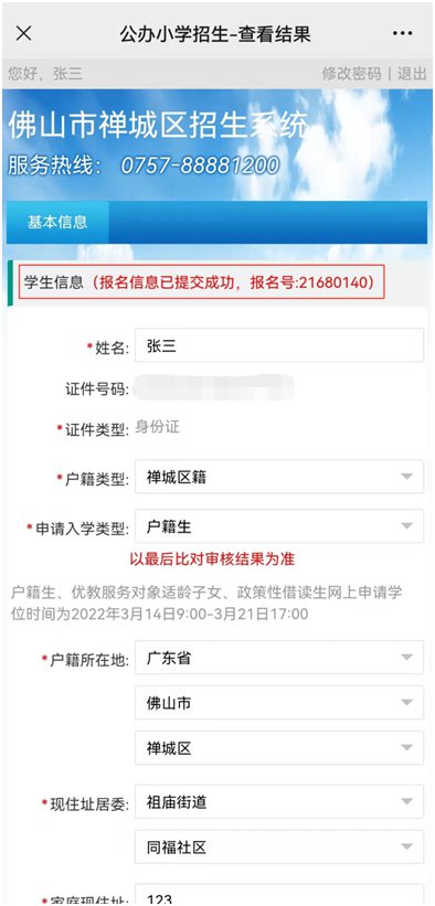 ▣ 报名结束前(3月21日17:00)网上信息比对全部匹配的,不允许网上修改信息。如果家长要修改已经匹配项目信息,需要在报名结束前到同济东路通济大院禅城教育“一门式”服务中心书面申请。