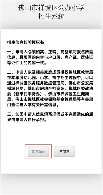 首次登录,请先点击“注册”。届时系统会弹出《招生信息核验授权书》,请家长认真阅读后,点击“同意”。