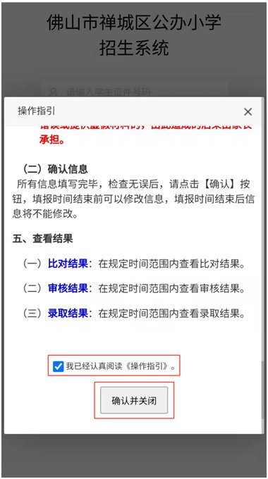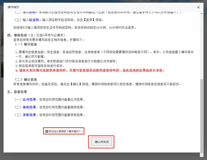 认真阅读《操作指引》,点选文末“我已经认真阅读《操作指引》”、并点击“确认并关闭”。