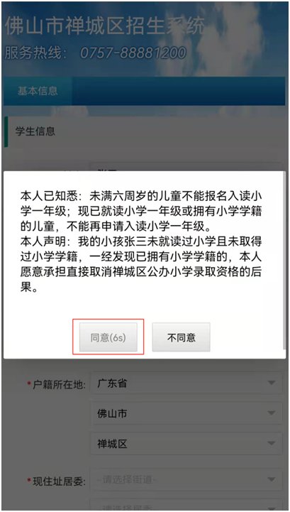 ①户籍类型选“禅城区户籍”的,需要填报居住信息。