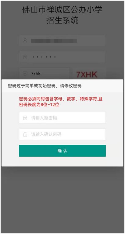 登录系统后,家长需要修改登录密码(新密码必须同时包含字母、数字、特殊字符,且最少有8位),请家长妥善保管新密码。
