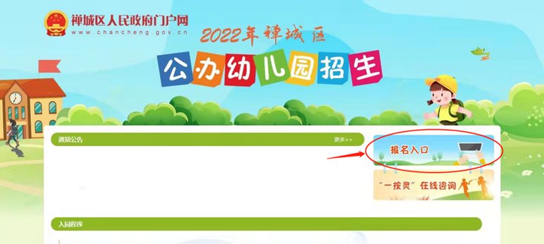 2022年3月16日9:00至3月22日9:00,家长可登录“禅城区人民政府门户网”,点击进入“禅城区2022年公办幼儿园招生”专栏报名。