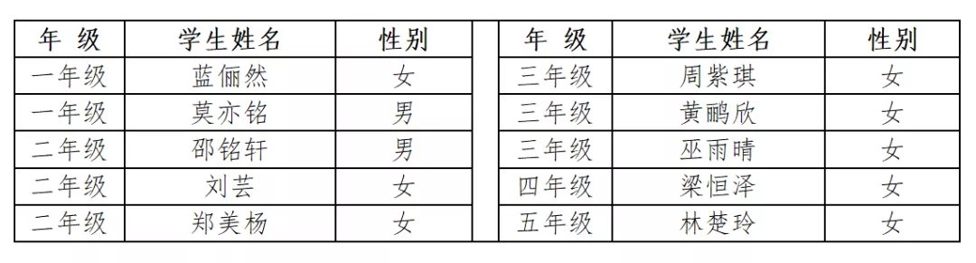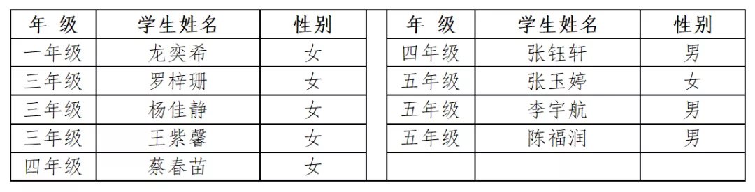 ②永平小学转学插班生拟录取名单: