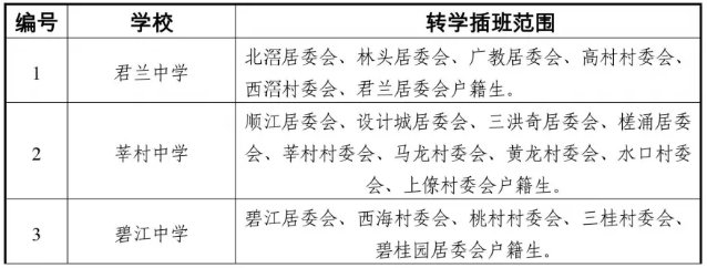 注:已具有北滘镇公办学校学籍的北滘镇户籍生原则上不接受插班转学申请。