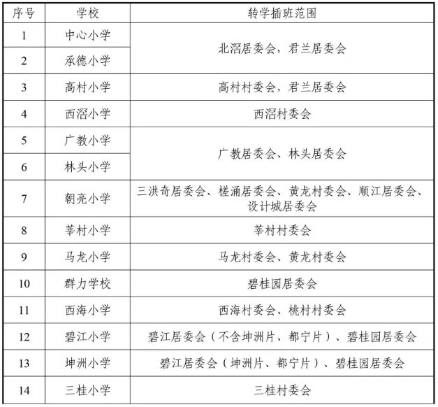 北滘镇2021年秋季公办中小学转学插班方案