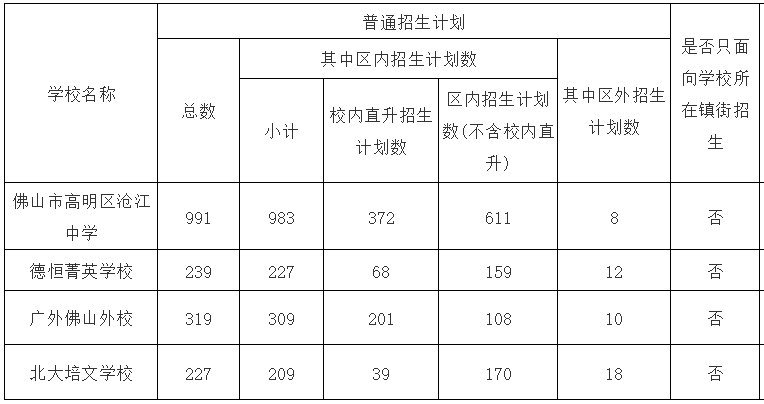 根据《佛山市教育局关于印发<佛山市义务教育民办学校招生工作实施方案>的通知》(佛山教育〔2021〕29号)和《关于印发《2021年高明区义务教育阶段民办学校招生工作细则》的通知》(明教考〔2021〕15号)精神和要求,高明区义务教育民办学校2021年特定招生对象录取已结束,现将高明区民办学校招生计划公布如下: