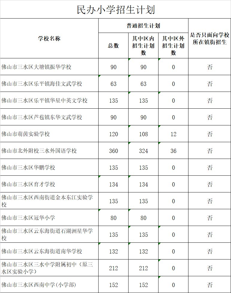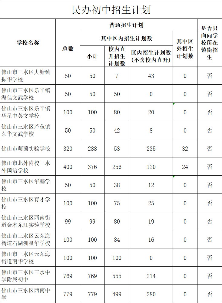根据《佛山市教育局关于印发<佛山市义务教育民办学校招生工作实施方案>的通知》(佛山教育〔2021〕29号)精神和要求,现公布三水区2021年义务教育民办学校普通招生计划。