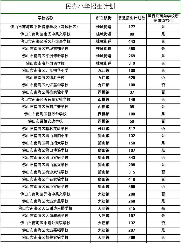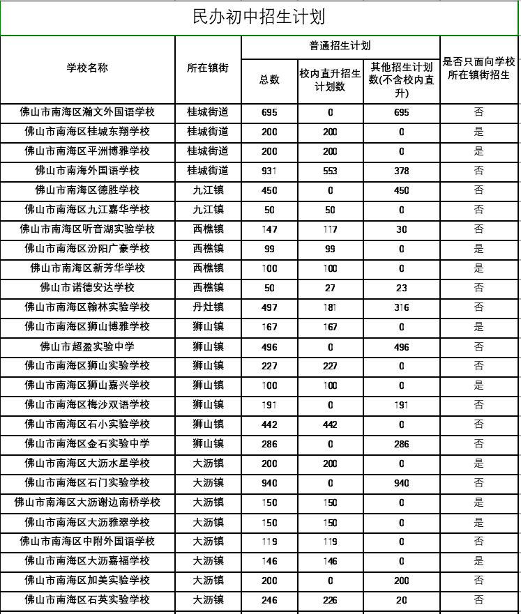 根据《佛山市教育局关于印发<佛山市民办义务教育学校招生工作实施方案(修订版)>的通知》(佛山教育〔2022〕40号)和《南海区教育局关于做好2022年义务教育阶段民办学校招生工作的通知》(南教基〔2022〕106号)精神和要求,现公布南海区2022年义务教育民办学校普通招生计划。