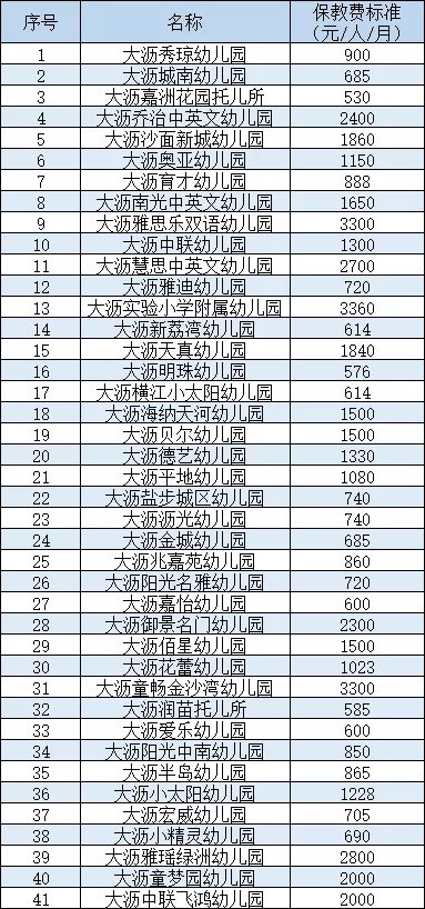 南海区民办托幼最新保教费信息明细表(大沥)
