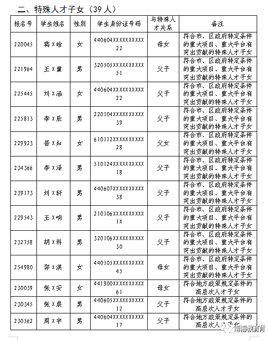 经审核,符合政策性优待对象子女、特殊人才子女资格共计53人(见下图),现进行公示。公示时间从2022年5月30日至2022年6月1日,为期3个工作日。公示期间如有异议,请通过电话或信函形式向南海区教育局反映,反映情况的材料须署真实姓名。