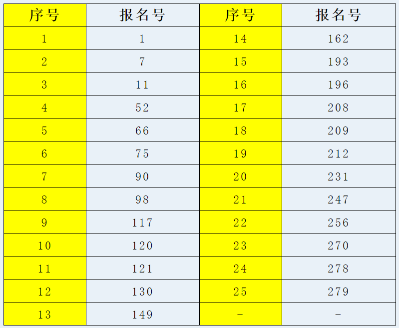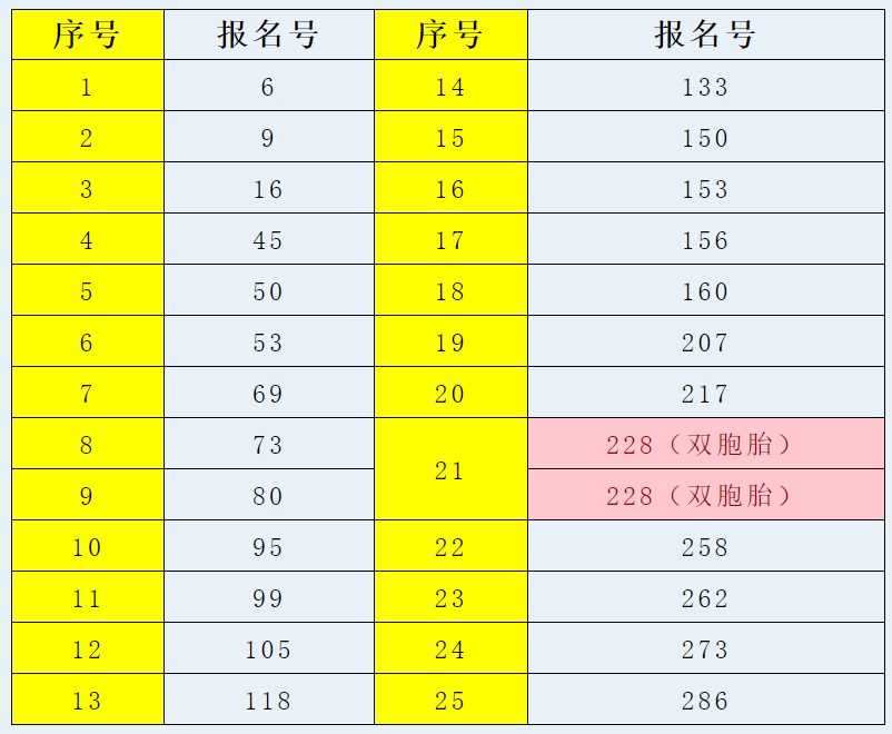 注:大班第二批次报名号为25个,其中228号为双胞胎(共用一号),报名人数共26人。