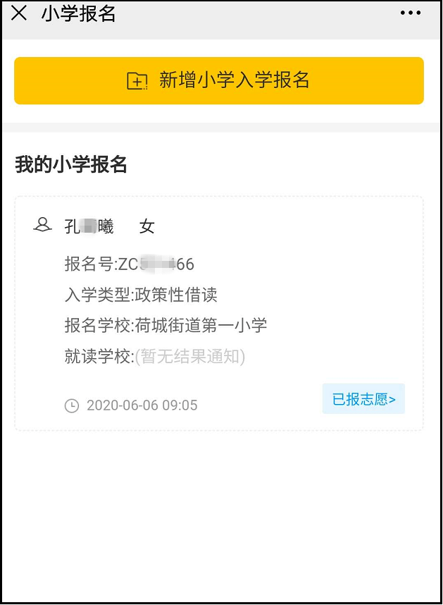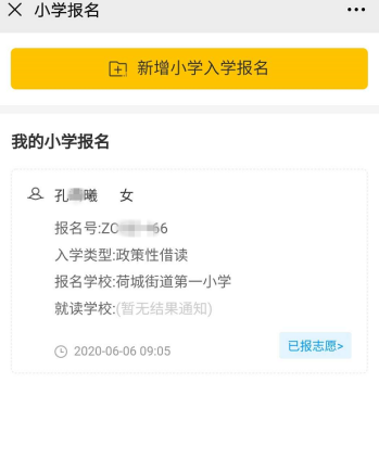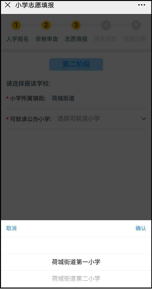 2.选择志愿填报报读符合条件所属镇(街道)公办学校,提交志愿。
