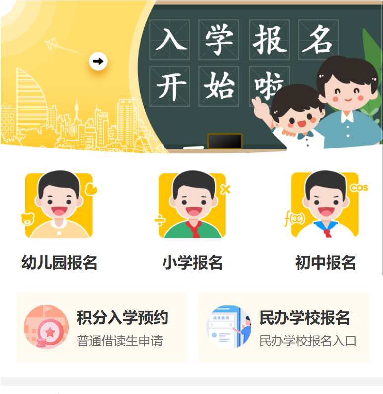 步骤一:进入义务教育阶段公办学校招生报名入口。