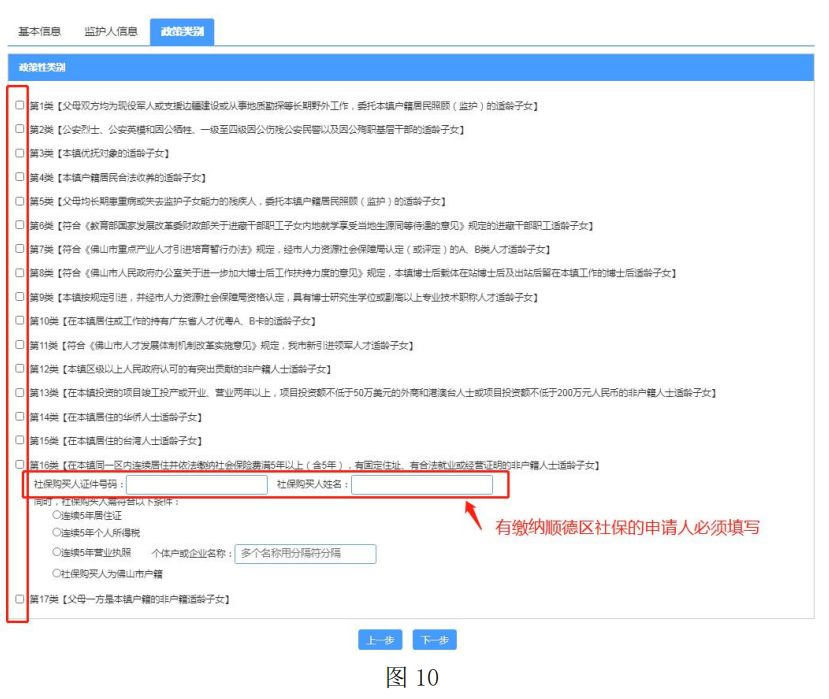 (三)【政策性类别】:根据申请人所符合的条件,选择对应的政策类别,并填写好相关补充内容。(图 10)