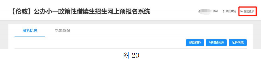 1.【退出登录】:为确保报名信息保密,请报名完成后按右上角“退出登录”(图 20)。