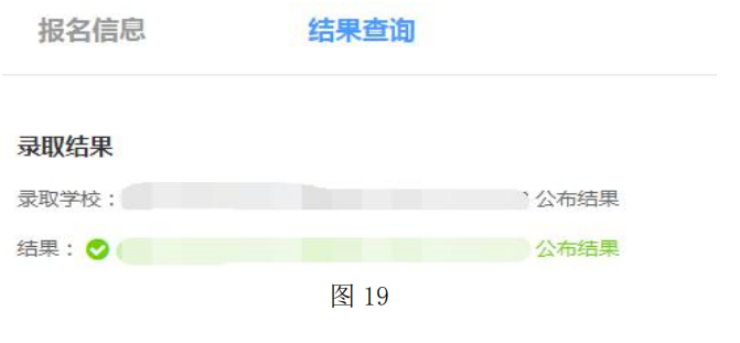 (二)【结果查询】:家长可在规定时间内登录系统可查看新生的录取结果(图 19)。