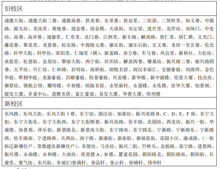 备注:大塘边、连洲街、东洲街的适龄儿童,可在羊额何显朝纪念小学申请入读,也可在伦教小学新校区申请入读。