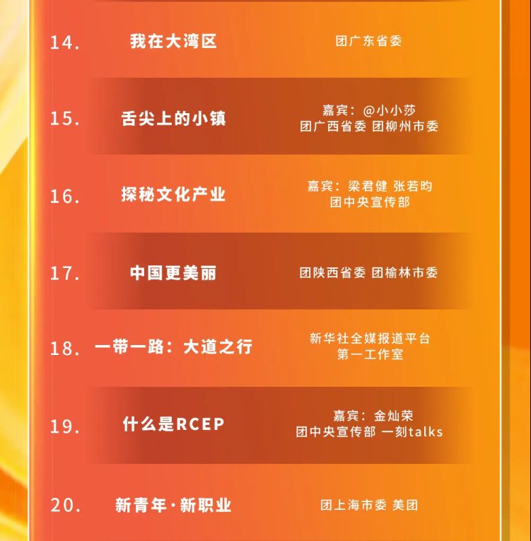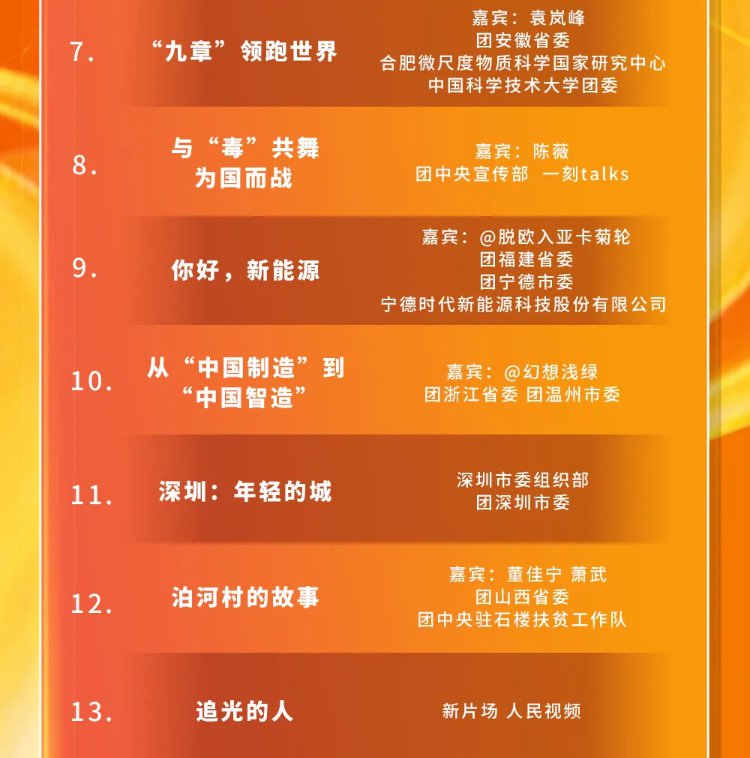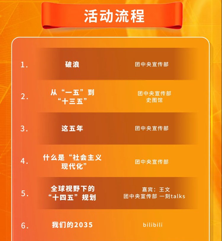 直播平台:@共青团中央 微信、微博、哔哩哔哩、快手、抖音、今日头条、腾讯直播。