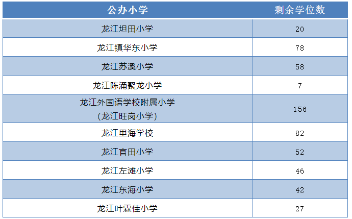 五、各公办小学剩余学位数