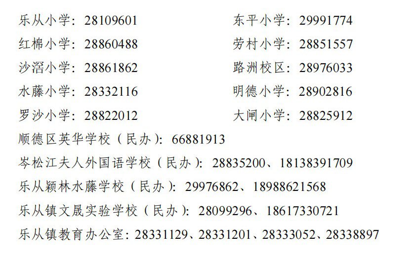 乐从镇2022年公办小学一年级政策性借读生招生方案