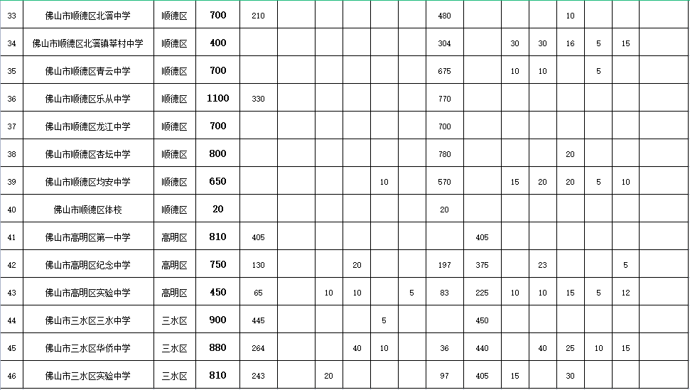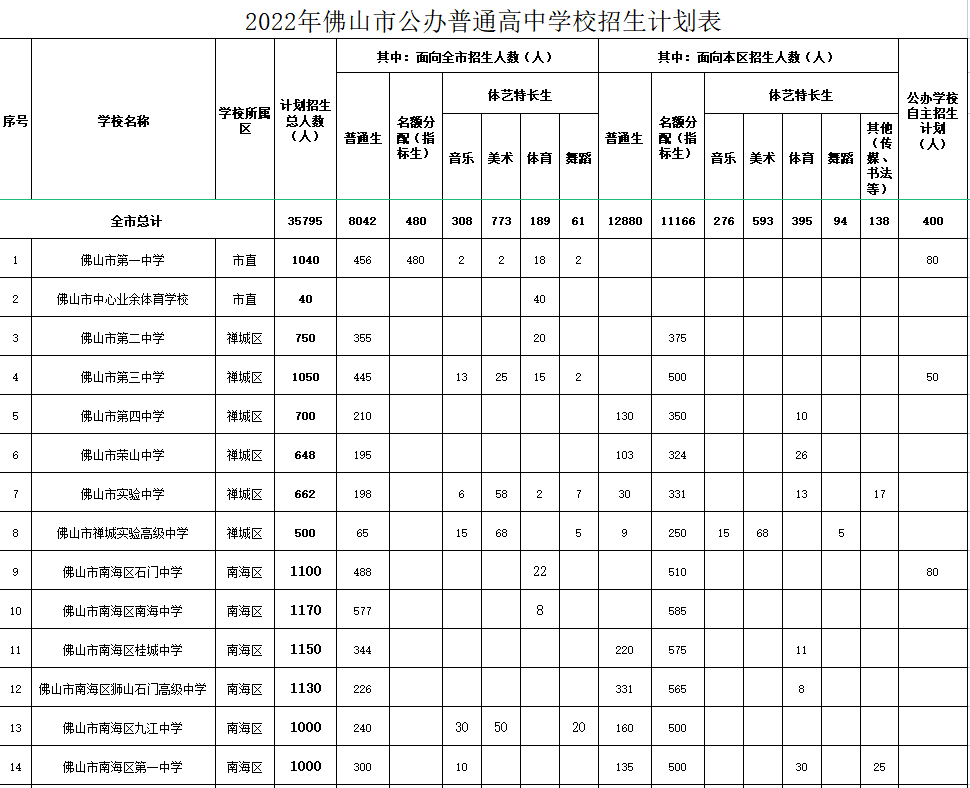 2022年佛山市公办普通高中学校招生计划表: