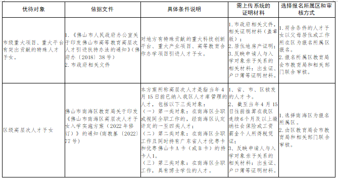 2022佛山南海区民办学校政策性和特殊人才子女直招实施细则