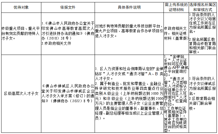禅城区2022年民办义务教育学校政策性直招、特殊人才子女直招实施细则: