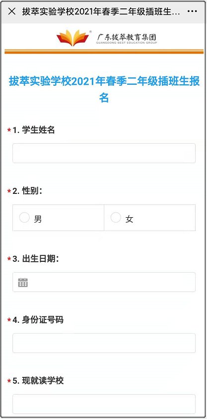 佛山市顺德区拔萃实验学校2021学年二年级春季插班生信息采集开始啦!